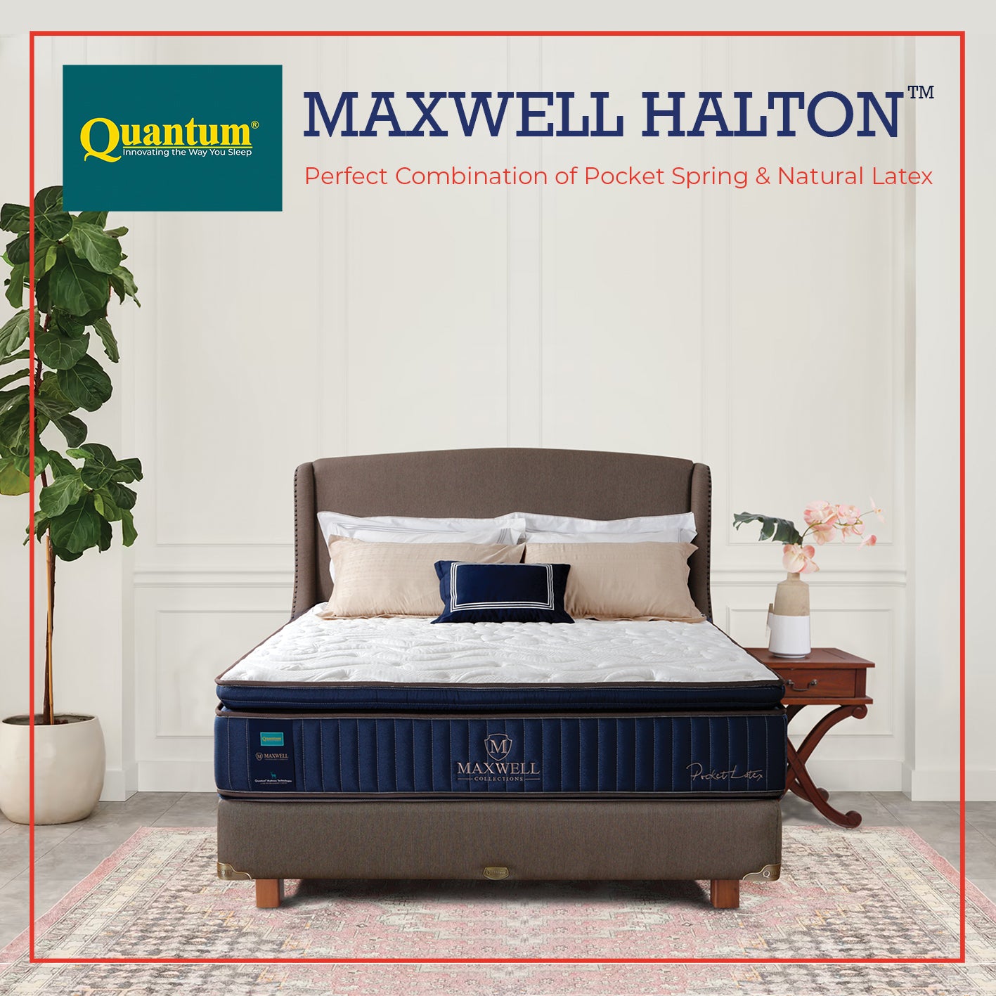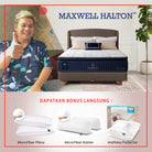 Maxwell Halton menggunakan sistem Pocket Spring yang dapat bekerja secara independen. Setiap pegas bergerak sendiri, memberikan dukungan yang lebih presisi pada tubuh dan mengurangi getaran yang berpindah ke sisi lain kasur. Ini membuat tidur lebih tenang, terutama bagi pasangan.