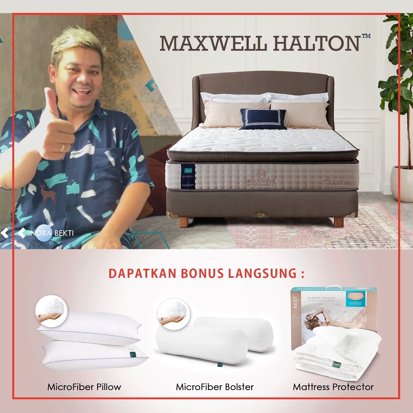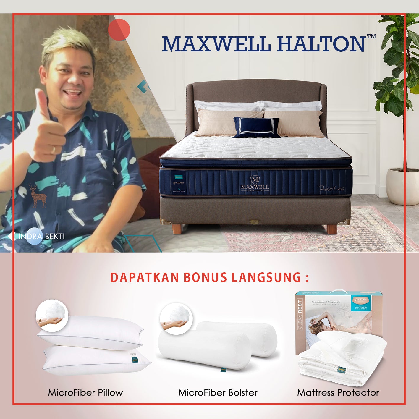 Kasur Fullset Pillow Top Pocket Spring Maxwell Halton. Maxwell Halton dirancang dengan Pillow Top yang memberi lapisan bantalan ekstra di bagian atas kasur. Struktur ini membuat kasur terasa lebih empuk namun tetap memiliki dukungan yang stabil.