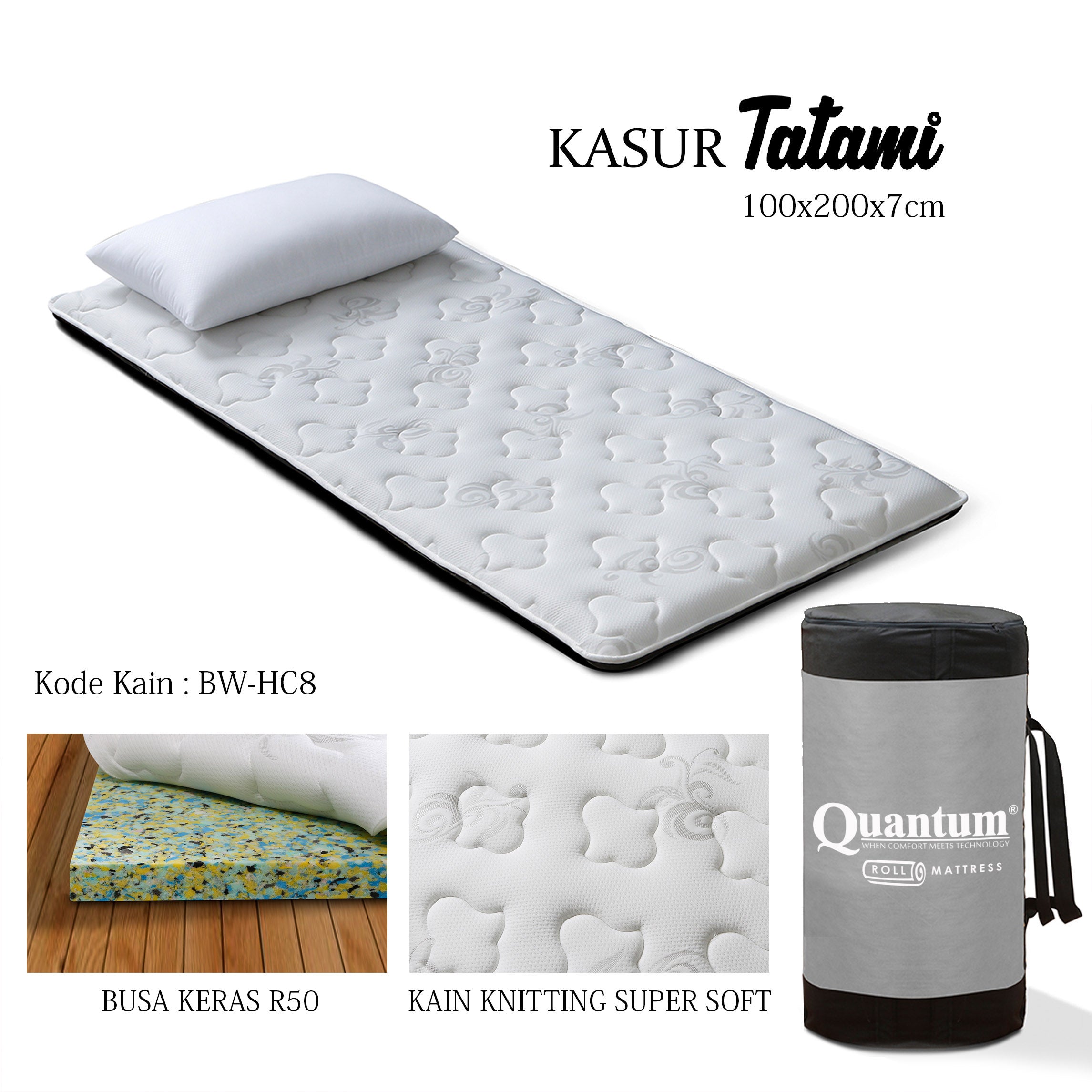 Kasur Futon & Lipat Rebounded Anti Air Quantum Tatami ini cocok untuk Anda yang mencari kasur serbaguna: bisa jadi kasur tidur, alas lesehan, matras untuk tamu, atau teman bepergian. Praktis, kuat, tidak mudah kempes, dan mudah dirawat.