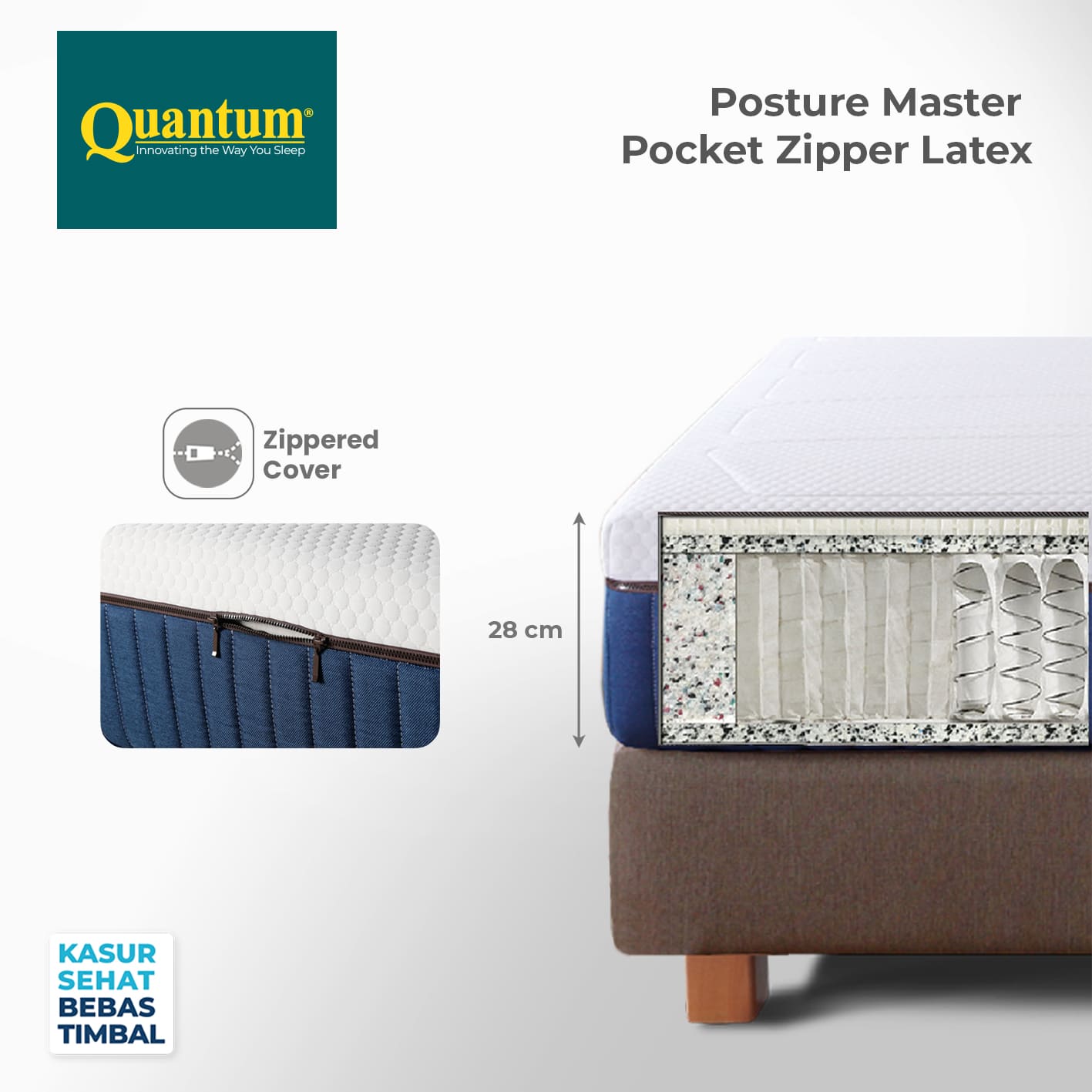 Konstruksi: Orthopedic + Latex + Pocket Spring