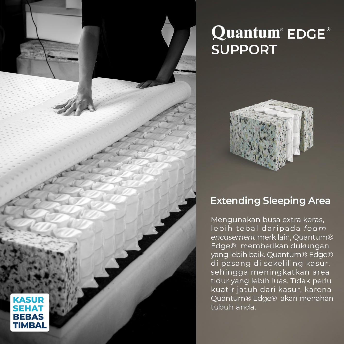 Bagian atas kasur di-quilting dengan high density foam berlapis, menghadirkan permukaan tidur yang nyaman dan responsif.