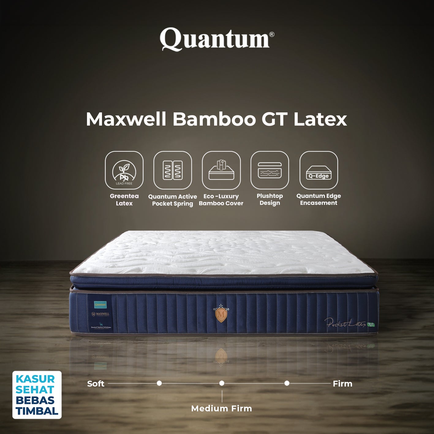 Kasur Springbed Maxwell Bamboo Greentea Latex Kenyamanan alami. Dukungan maksimal. Tidur yang benar-benar berkualitas. Kasur Springbed Maxwell Bamboo Greentea Latex dirancang untuk Anda yang ingin merasakan kombinasi sempurna antara kemewahan, kenyamanan, dan kesehatan tidur. Setiap detail dibuat dari material premium yang bekerja bersama untuk memberi pengalaman tidur yang sejuk, empuk, stabil, dan tahan lama.