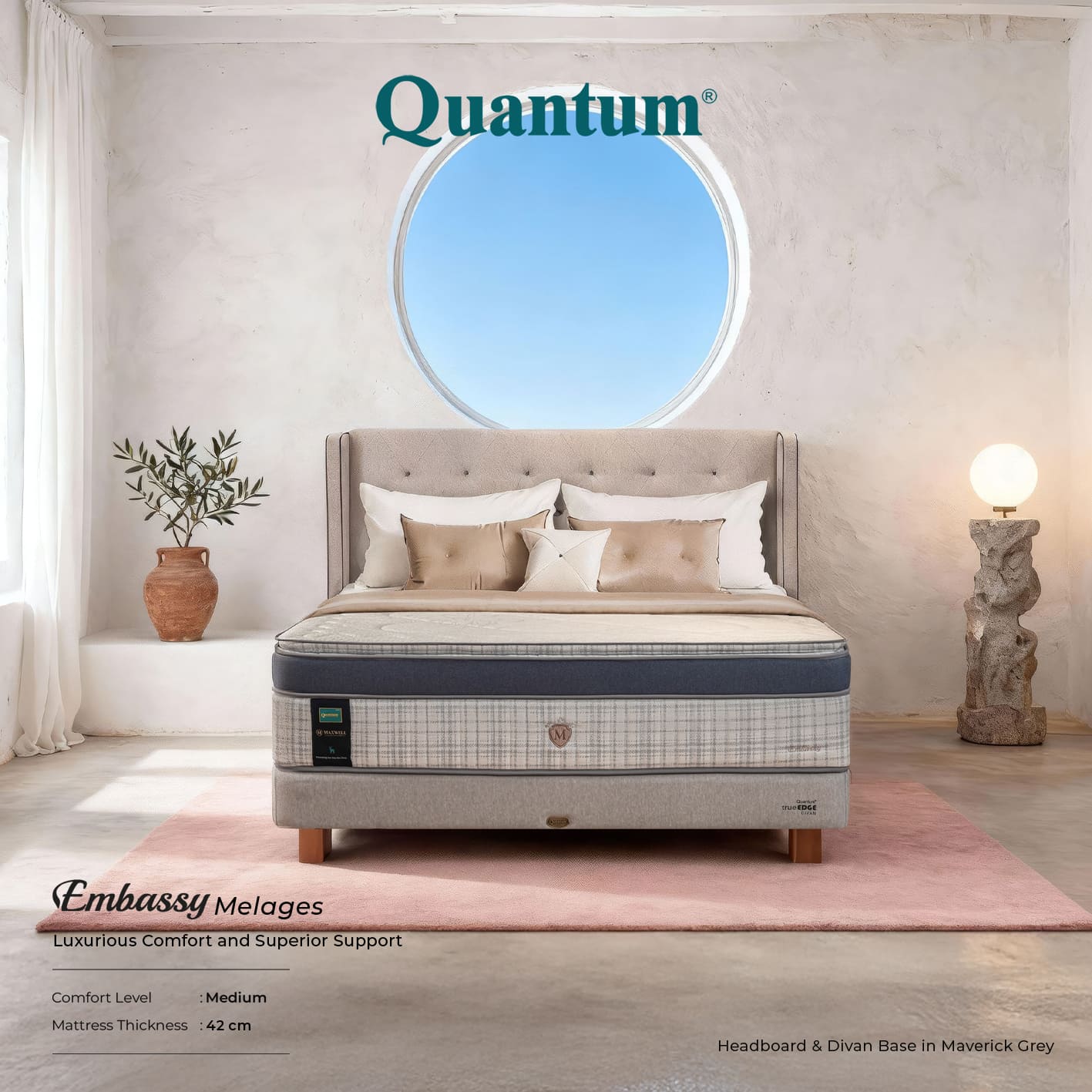 Kasur Springbed dengan Latex Layer Maxwell Embassy Melages menawarkan kenyamanan tinggi melalui Latex Natural, stabilitas dari Pocket-on-Pocket System, dan ketahanan tepi berkat Quantum Edge System. Dengan desain plush yang mewah, kasur ini cocok bagi siapa pun yang mencari tidur lebih nyenyak dan dukungan maksimal.