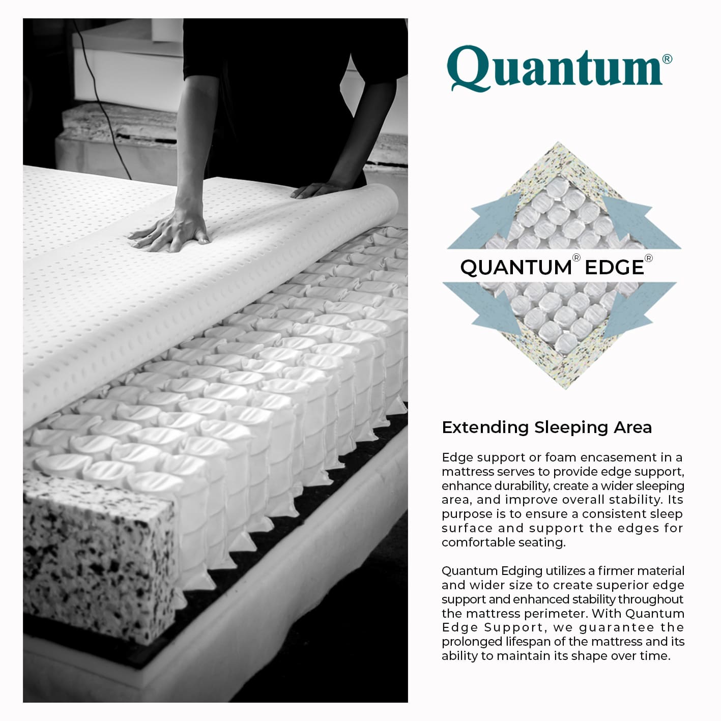 Teknologi Quantum Edge System membantu menjaga kekokohan hingga bagian tepi, menciptakan area tidur yang lebih luas. Anda dapat duduk atau tidur dekat tepi kasur tanpa merasa mudah amblas.