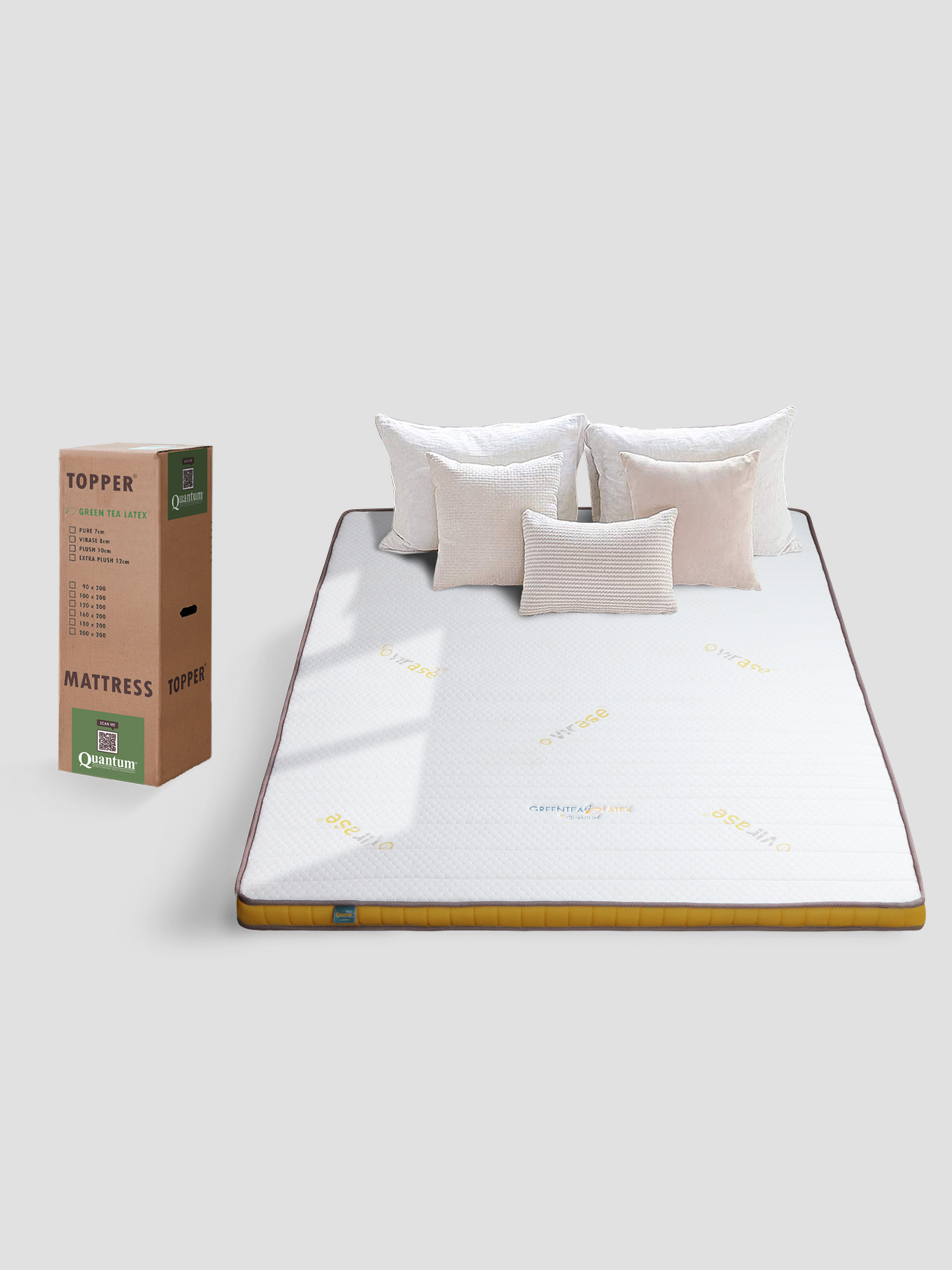 • Greentea Latex by Quantum, di desain dengan Ventilated Hole yang sama dengan latex natural, berfungsi untuk menghilangkan panas dan membantu mencegah panas berlebih